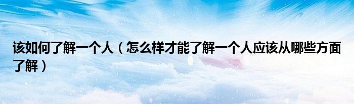 該如何了解一個人(怎么樣才能了解一個人應該從哪些方面了解)
