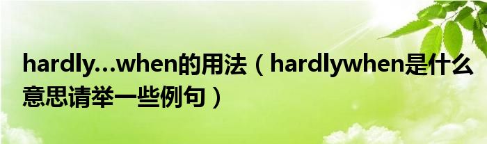 hardly…when的用法(hardlywhen是什么意思請舉一些例句)