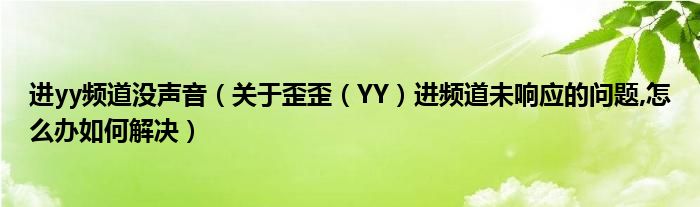 進yy頻道沒聲音(關于歪歪(YY)進頻道未響應的問題,怎么辦如何解決)