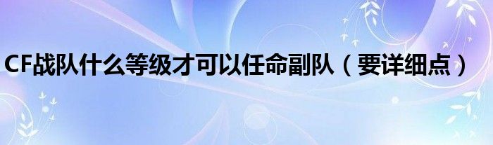 CF戰隊什么等級才可以任命副隊(要詳細點)