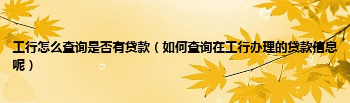 工行怎么查詢是否有貸款(如何查詢在工行辦理的貸款信息呢)