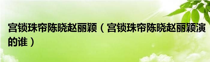 宮鎖珠簾陳曉趙麗穎(宮鎖珠簾陳曉趙麗穎演的誰)