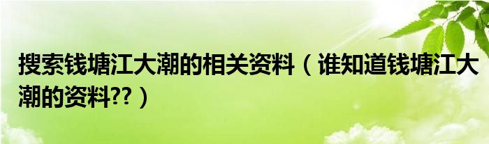 導讀 大家好,精選小編來為大家解答以上的問題。搜索錢塘江大潮的相關資料,誰知道錢塘江大潮的資料??很多人還不知道,現在讓我們一起來看看吧!