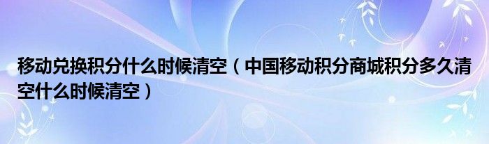 移動兌換積分什么時候清空(中國移動積分商城積分多久清空什么時候清空)