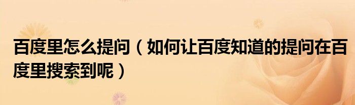百度里怎么提問(如何讓百度知道的提問在百度里搜索到呢)