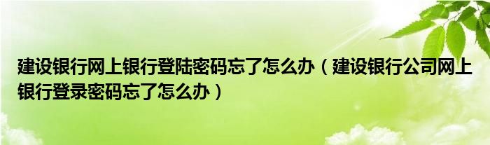 建設銀行網上銀行登陸密碼忘了怎么辦(建設銀行公司網上銀行登錄密碼忘了怎么辦)