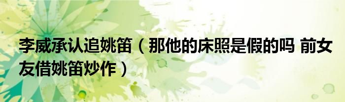 導讀 大家好,精選小編來為大家解答以上的問題。李威承認追姚笛,那他的床照是假的嗎 前女友借姚笛炒作很多人還不知道,現在讓我們一起來看看吧