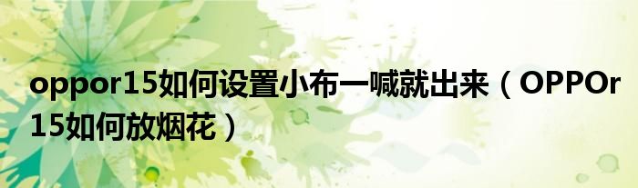 oppor15如何設置小布一喊就出來(OPPOr15如何放煙花)