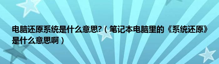 電腦還原系統是什么意思?(筆記本電腦里的《系統還原》是什么意思啊)