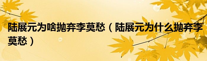陸展元為啥拋棄李莫愁(陸展元為什么拋棄李莫愁)