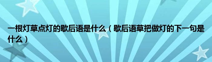 一根燈草點燈的歇后語是什么(歇后語草把做燈的下一句是什么)