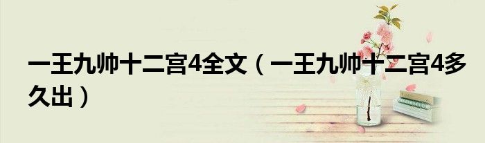 大家好,精選小編來為大家解答以上的問題。一王九帥十二宮4全文,一王九帥十二宮4多久出很多人還不知道,現在讓我們一起來看看吧!