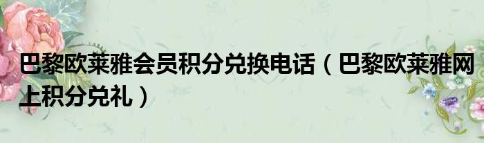 巴黎歐萊雅會員積分兌換電話(巴黎歐萊雅網上積分兌禮)