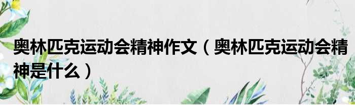 導讀 大家好,精選小編來為大家解答以上的問題。奧林匹克運動會精神作文,奧林匹克運動會精神是什么很多人還不知道,現在讓我們一起來看看吧!1