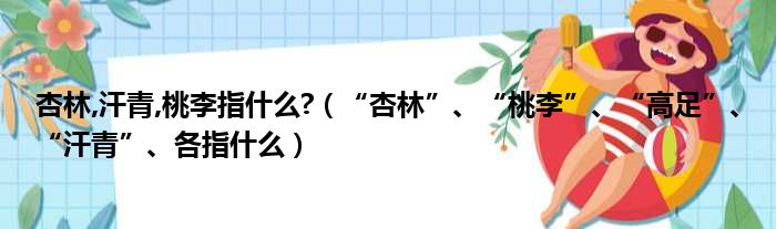 大家好,精選小編來為大家解答以上的問題。杏林,汗青,桃李指什么?,“杏林”、“桃李”、“高足”、“汗青”、各指什么很多人還不知道,現在讓我們一起來看看吧!