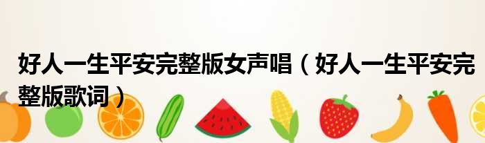 好人一生平安完整版女聲唱(好人一生平安完整版歌詞)