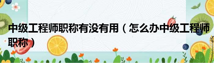 中級工程師職稱有沒有用(怎么辦中級工程師職稱)
