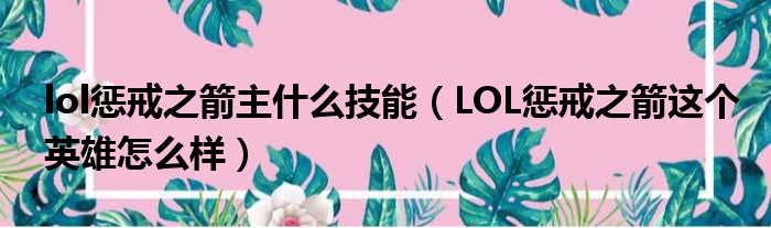 lol懲戒之箭主什么技能(LOL懲戒之箭這個英雄怎么樣)