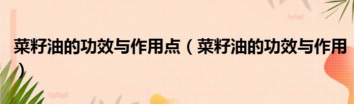 菜籽油的功效與作用點(菜籽油的功效與作用)