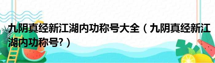 九陰真經新江湖內功稱號大全(九陰真經新江湖內功稱號?)