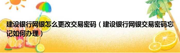 建設銀行網銀怎么更改交易密碼(建設銀行網銀交易密碼忘記如何辦理)