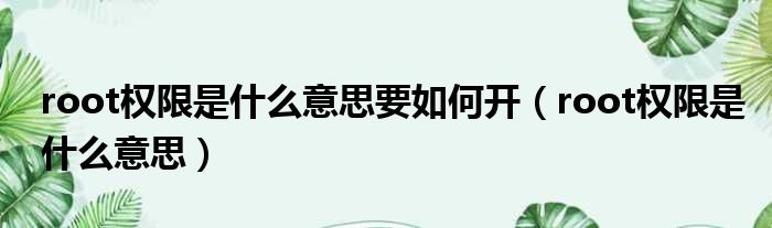 導讀 大家好,精選小編來為大家解答以上的問題。root權限是什么意思要如何開,root權限是什么意思很多人還不知道,現在讓我們一起來看看吧!1、R