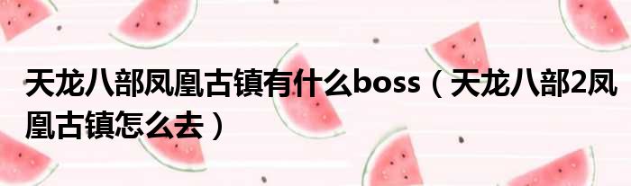 天龍八部鳳凰古鎮有什么boss(天龍八部2鳳凰古鎮怎么去)