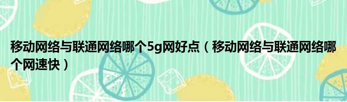 移動網絡與聯通網絡哪個5g網好點(移動網絡與聯通網絡哪個網速快)