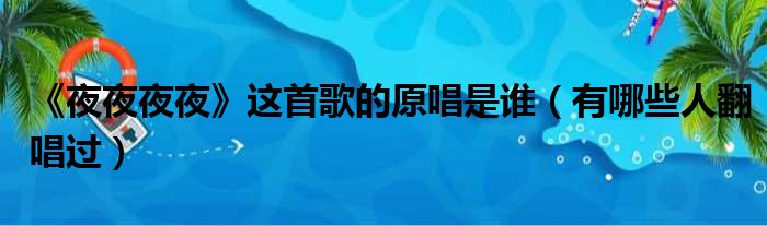 《夜夜夜夜》這首歌的原唱是誰(有哪些人翻唱過)