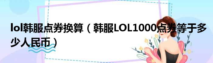 lol韓服點券換算(韓服LOL1000點券等于多少人民幣)