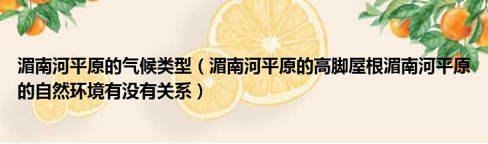 湄南河平原的氣候類型(湄南河平原的高腳屋根湄南河平原的自然環境有沒有關系)