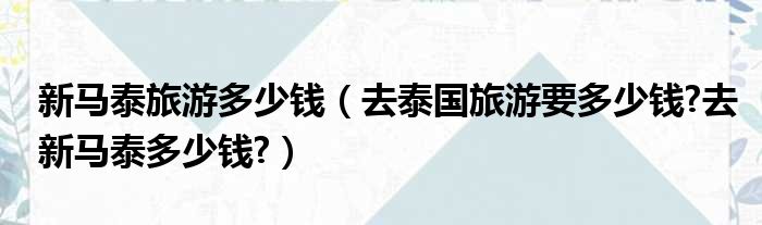 新馬泰旅游多少錢(去泰國旅游要多少錢?去新馬泰多少錢?)