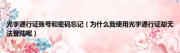 導讀 大家好,精選小編來為大家解答以上的問題。光宇通行證賬號和密碼忘記,為什么我使用光宇通行證卻無法登陸呢很多人還不知道,現在讓我們一起