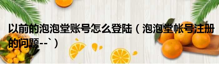以前的泡泡堂賬號怎么登陸(泡泡堂帳號注冊的問題--`)