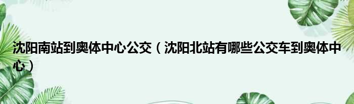 大家好,精選小編來為大家解答以上的問題。沈陽南站到奧體中心公交,沈陽北站有哪些公交車到奧體中心很多人還不知道,現在讓我們一起來看看吧!