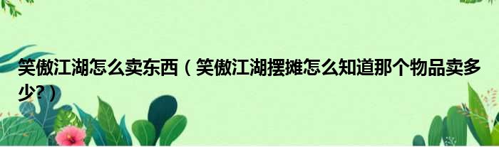 笑傲江湖怎么賣東西(笑傲江湖擺攤怎么知道那個物品賣多少?)