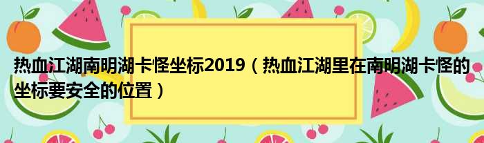 熱血江湖南明湖卡怪坐標2019(熱血江湖里在南明湖卡怪的坐標要安全的位置)