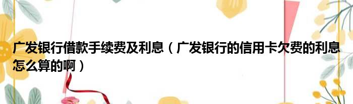 廣發銀行借款手續費及利息(廣發銀行的信用卡欠費的利息怎么算的啊)