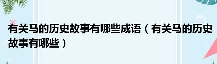 大家好,精選小編來為大家解答以上的問題。有關馬的歷史故事有哪些成語,有關馬的歷史故事有哪些很多人還不知道,現在讓我們一起來看看吧!