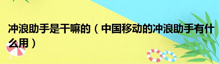 沖浪助手是干嘛的(中國移動的沖浪助手有什么用)