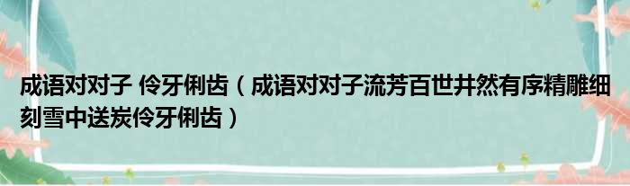成語對對子 伶牙俐齒(成語對對子流芳百世井然有序精雕細刻雪中送炭伶牙俐齒)