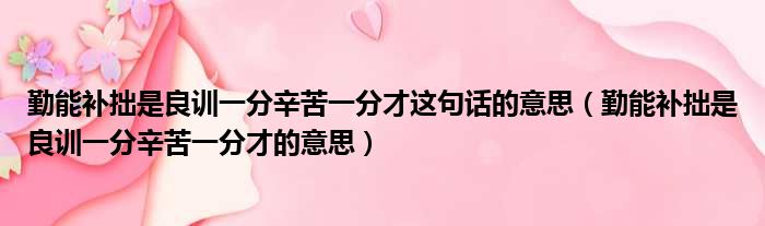 勤能補拙是良訓一分辛苦一分才這句話的意思(勤能補拙是良訓一分辛苦一分才的意思)