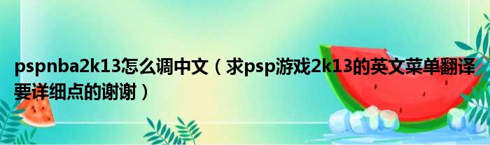 大家好,精選小編來為大家解答以上的問題。pspnba2k13怎么調中文,求psp游戲2k13的英文菜單翻譯要詳細點的謝謝很多人還不知道,現在讓我們一起來看看吧!