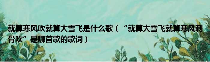 就算寒風吹就算大雪飛是什么歌(“就算大雪飛就算寒風刺骨吹”是哪首歌的歌詞)