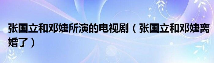 導讀 大家好,精選小編來為大家解答以上的問題。張國立和鄧婕所演的電視劇,張國立和鄧婕離婚了很多人還不知道,現在讓我們一起來看看吧!不是,
