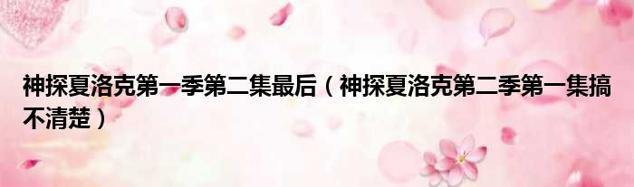 導讀 大家好,精選小編來為大家解答以上的問題。神探夏洛克第一季第二集最后,神探夏洛克第二季第一集搞不清楚很多人還不知道,現在讓我們一起來