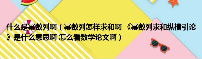 大家好,精選小編來為大家解答以上的問題。什么是冪數列啊,冪數列怎樣求和啊 《冪數列求和縱橫引論》是什么意思啊 怎么看數學論文啊很多人還不知道,現在讓我們一起來看看吧!