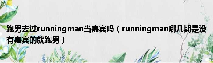 導讀 大家好,精選小編來為大家解答以上的問題。跑男去過runningman當嘉賓嗎,runningman哪幾期是沒有嘉賓的就跑男很多人還不知道,現在讓我們一