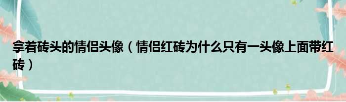 拿著磚頭的情侶頭像(情侶紅磚為什么只有一頭像上面帶紅磚)