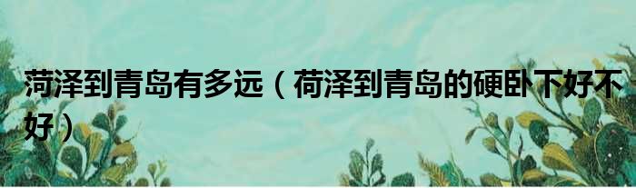 導讀 大家好,精選小編來為大家解答以上的問題。菏澤到青島有多遠,荷澤到青島的硬臥下好不好很多人還不知道,現在讓我們一起來看看吧!菏澤到青